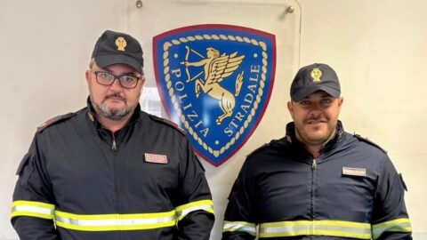Olindo e Gianluca della Polizia Stradale di Cassino, in provincia di Frosinone, in corsa per la vita. Intervenuti per assistere