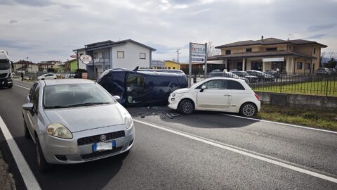 Incidente sulla Casilina nella tarda mattinata a Castrocielo, tre le auto coinvolte: una Lancia Delta, una Fiat 500 e una