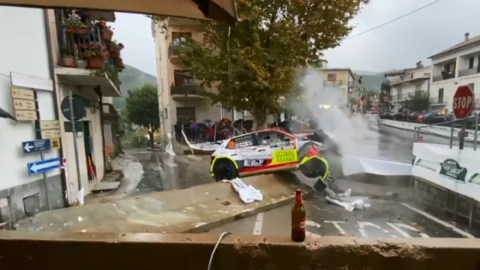 Un’auto in gara durante il rally del Lazio Cassino-Pico è uscita fuori strada finendo contro un new jersey montato per