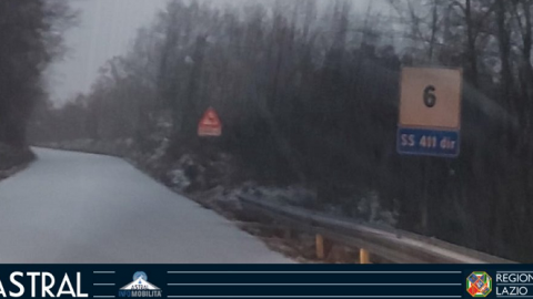 Neve in Ciociaria, sulla SR 411 Dir Di Campocatino dove sono attivi gli spazzaneve di Astral spa dal km 4+500