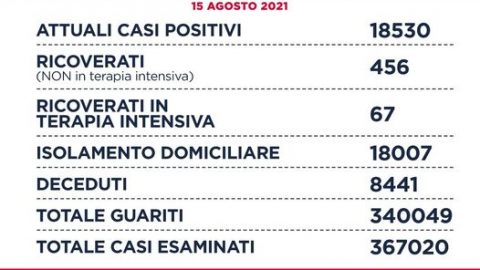 Coronavirus: Oggi si registrano 467 nuovi casi positivi, compresi i recuperi (-116), 1 decesso, compresi i recuperi (-4) i ricoverati