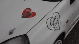 Luigi aveva una grande passione per i motori, per i rally. E gli amici lo hanno voluto ricordare con la sua macchina, una Renault Clio con impressa la scritta “Ciao Luigi”. Su quella vettura anche un cuore con all’interno scritto “Ciao Simone”, ovvero , Simone Girolami,  venuto a mancare fa proprio a Ceccano per un malore durante una manifestazione motoristica. Tantissima la commozione dei presenti durante l’omelia.