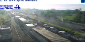 Traffico in tilt in A1, nel tratto compreso tra Cassino e Frosinone verso Roma, per un incidente avvenuto al km 636 nel quale è coinvolto un camion, intraversato, che occupa l’intera carreggiata, con perdita di gasolio. All’interno del tratto chiuso il traffico è bloccato con 9 km di coda. In alternativa, dopo l’uscita obbligatoria a Cassino, percorrere la SS6 Casilina e rientrare sulla A1 a Frosinone. Sul posto sono presenti il personale di Autostrade per l’Italia e tutti i mezzi di soccorso.