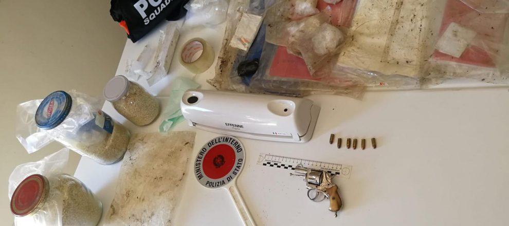 Droga ed un arma nascosta sotto un terreno tra Cassino e Cervaro. E’quanto rinvenuto dagli agenti della Squadra Mobile di Frosinone e del Commissariato di Cassino.
