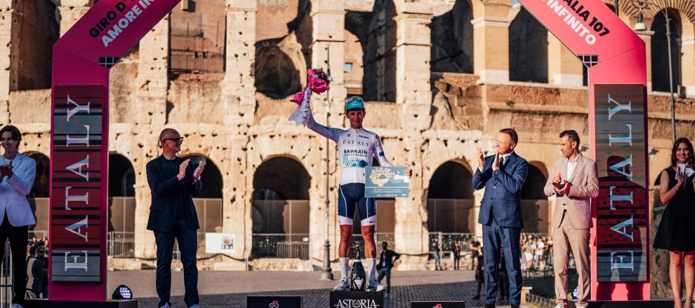 Una corsa rosa dominata da Tadej Pogacar, che ha visto protagonista anche il 22enne di Frosinone capitano della Bahrain Victorius che, alla sua prima apparizione al Giro, è anche primo tra gli italiani chiudendo al quinto posto in classifica generale con un distacco di 12’49” dalla maglia rosa.