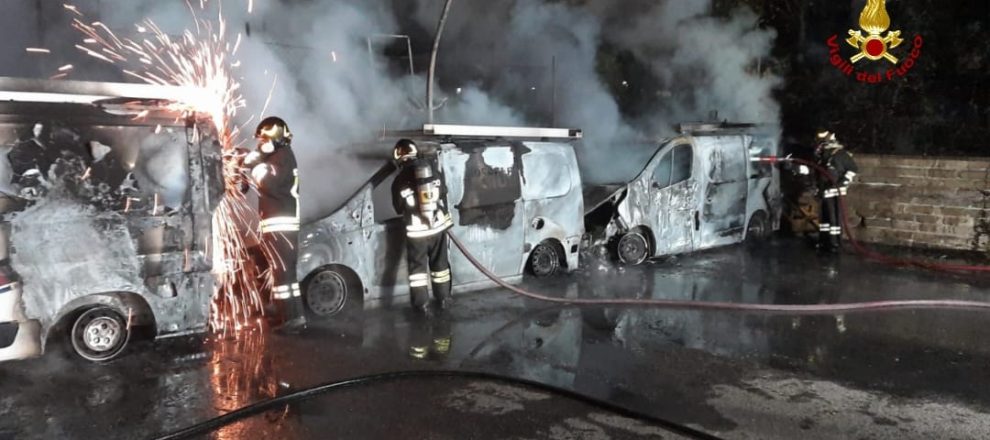 Tre furgoni nella notte hanno preso fuoco in un’area privata a Cisterna di Latina.