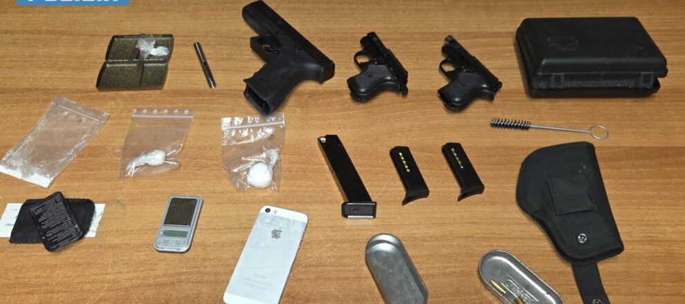 Gli agenti lo stavano cercando per l’esecuzione di alcune notifiche quando è stato individuato e riconosciuto dai poliziotti di Cisterna. Dai controlli in una pertinenza dell’abitazione in cui l’uomo si trovava, i poliziotti hanno rinvenuto 3 pistole scacciacani modificate ed alterate tanto da avere – per gli inquirenti – le caratteristiche delle armi comuni da sparo, e in più diverse munizioni. Mentre all’interno dell’auto sono stati recuperati 10 grammi di cocaina già suddivisi in dosi.