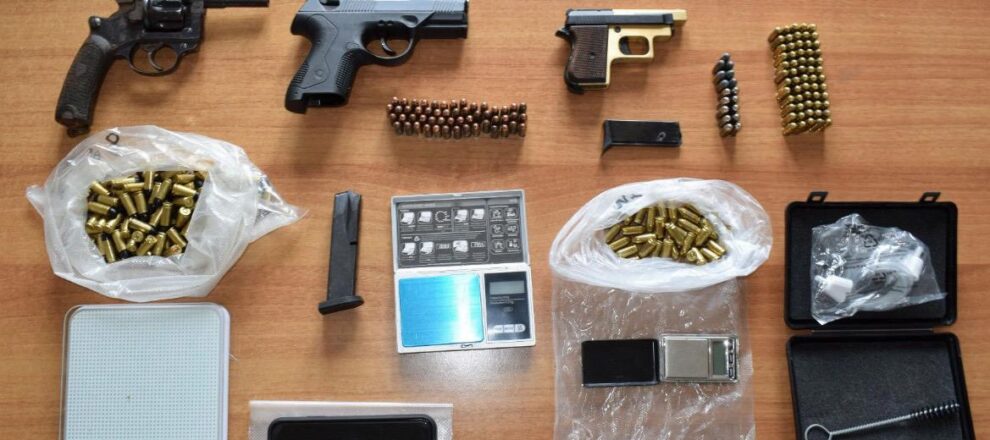 In un borsone stipato nel retro della vettura, hanno trovato una calibro 9 priva di matricola, marca Beretta completa di caricatore, vuoto al momento del controllo, una pistola semi-automatica priva di matricola, anche questa con caricatore inserito vuoto e una Rivoltella con calcio in legno con evidenti segni di usura;