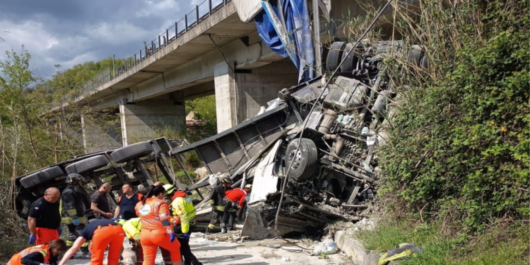 Grave incidente stradale nel pomeriggio lungo la superstrada Sora-Avezzano, nel tratto che precede lo svincolo per Civitella Roveto, in direzione Avezzano, in Abruzzo. Un mezzo pesante è precipitato fuori dalla carreggiata da un viadotto.