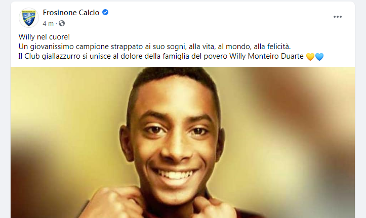 Anche il Frosinone Calcio vicino ai familiari di Willy Monteiro Duarte. Con un post sui social la società giallazzurra ha ricordato il giovane ucciso a Colleferro.