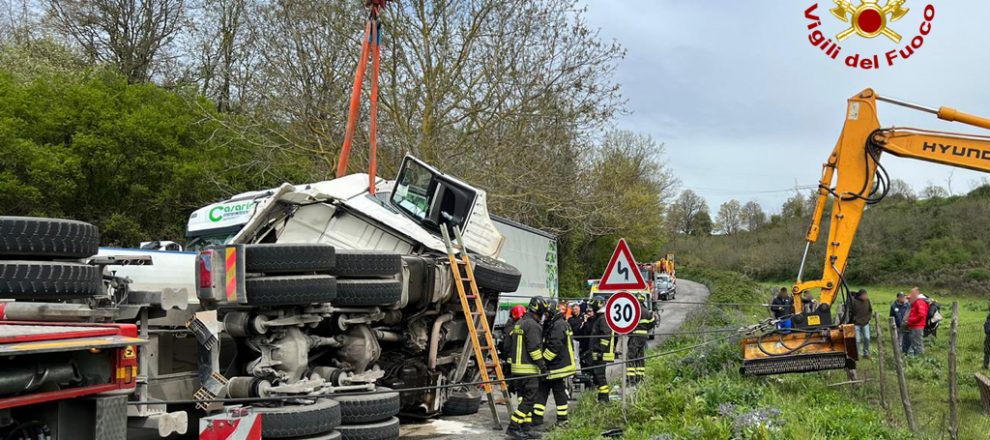 INCIDENTE STRADALE TRA DUE MEZZI PESANTI: SOCCORSO UN AUTISTA BLOCCATO NELLA CABINA