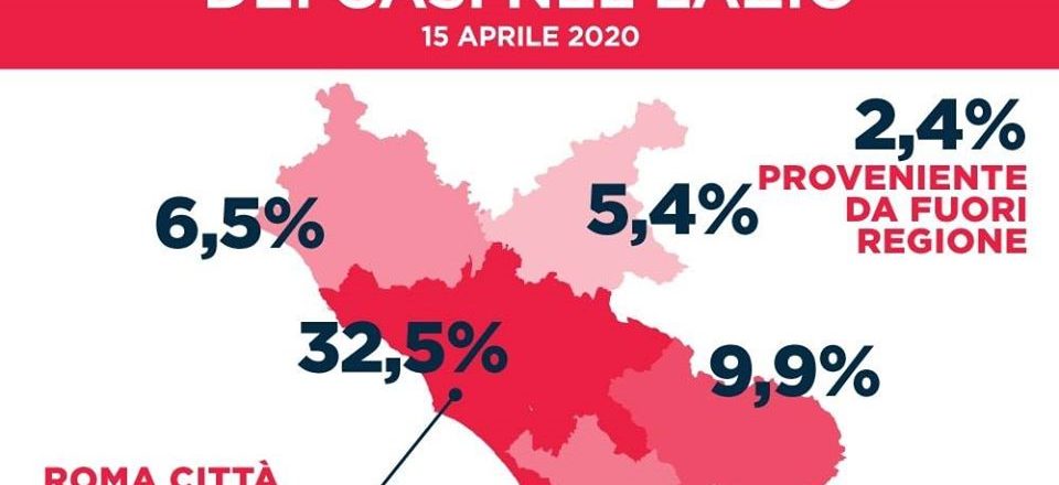 Questa la mappa disegnata dall’unità di crisi covid-19 della Regione Lazio sulla distribuzione del virus nel territorio regionale.