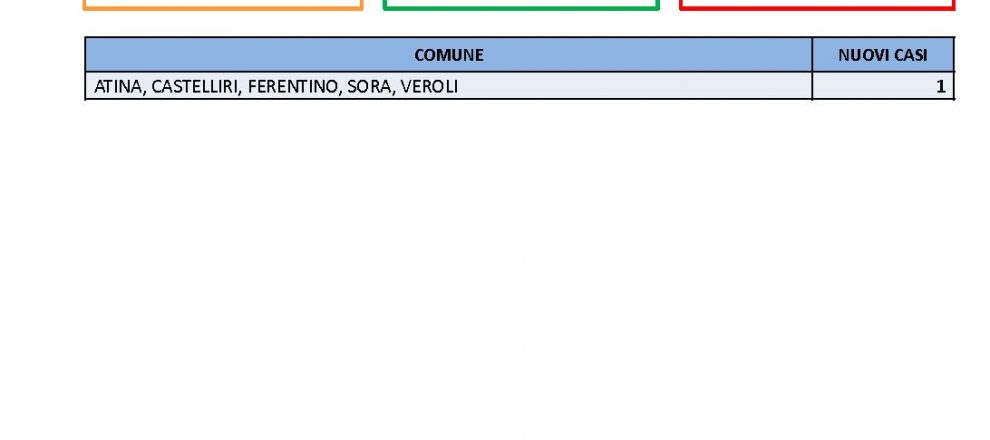 Covid – Ancora zero morti in provincia di Frosinone, i nuovi casi sono 5Dalle Province, In primo piano8 Luglio 2021 8 Luglio 2021 Ancora zero decessi in provincia di Frosinone dove su 580 tamponi effettuati sono emersi 5 nuovi casi. Nei comuni di Atina, Castelliri, Ferentino, Sora e Veroli I negativizzati sono 7. Condividi sui social: Share on Facebook Share on WhatsApp Share on X (Twitter) Share on LinkedIn Share on Email Share on Telegram Navigazione articoli Previous Post Roma – Questione cinghiali, migliaia di agricoltori Coldiretti a Montecitorio: c’è l’impegno formale del premierCronaca, In primo piano8 Luglio 2021Next Post Frosinone – Tamponi di sera per i giovani: gratis e senza prenotazioneDalle Province, In primo piano8 Luglio 2021