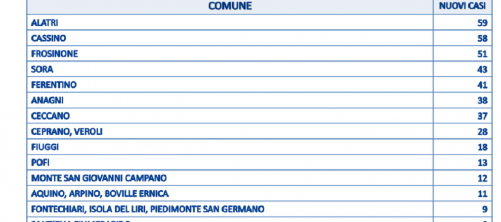 La città con più è ALATRI 59. CASSINO 58. FROSINONE 51,