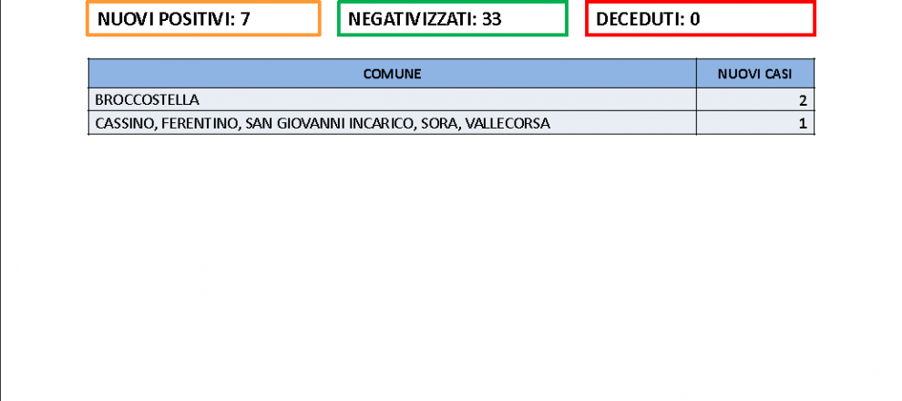Ci sono stati due casi a Broccostella, uno a Cassino, Ferentino, San Giovanni incarico, Sora, Vallecorsa