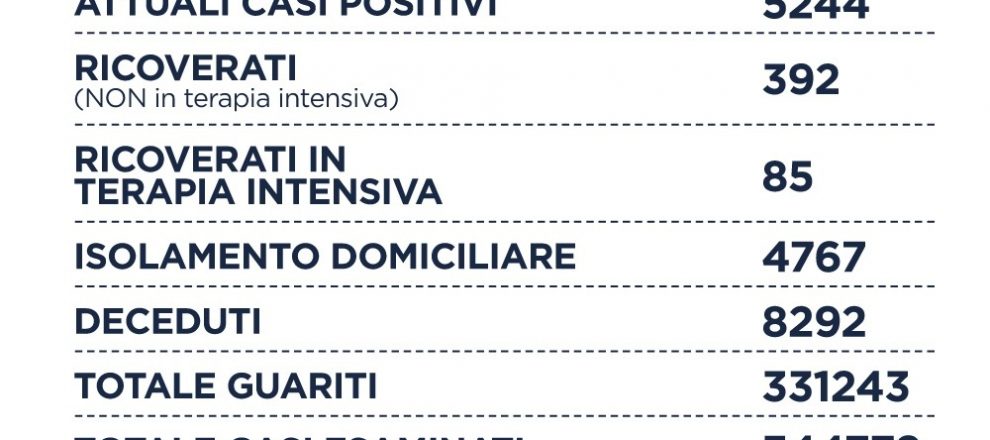 Oggi nel Lazio su oltre 11mila tamponi molecolari (+1.321) si registrano 143 nuovi casi positivi (+25), i decessi sono 11 (-2), i ricoverati sono 392 (-38). I guariti 390, le terapie intensive sono 85 (-5). Il rapporto tra positivi e tamponi è al 1,2%.