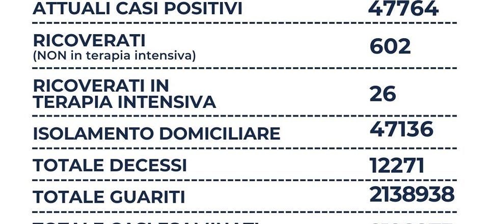 Nel Lazio su un totale di 16.351 tamponi, si registrano 2.716 nuovi casi positivi (-171), sono 3 i decessi (-1), 602 i ricoverati (-1), 26 le terapie intensive (-2) e +3.290 i guariti. Il rapporto tra positivi e tamponi è al 16,6%.