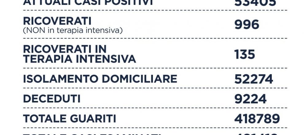 Nelle province si registrano 438 nuovi casi: Asl di Frosinone: 129 casi e 1 decesso. Asl di Latina: 125 casi e 0 decessi. Asl di Rieti: 88 casi e 0 decessi. Asl di Viterbo: 96 casi e 1 decesso.