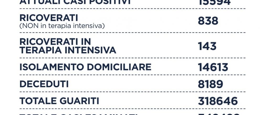 Oggi nel Lazio su oltre 10mila tamponi molecolari (-1029) si registrano 211 nuovi casi positivi (+16), i decessi sono 4 (-6), i ricoverati sono 838 (-44). I guariti sono 1532, le terapie intensive sono 143 (-2). Il rapporto tra positivi e tamponi è al 2%.