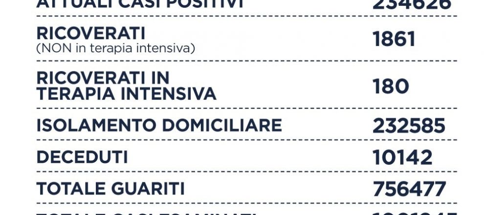 Superata quota 13 milioni di vaccini complessivi, superate le 3,7 milioni di dosi booster effet-tuate, il 77% di copertura con dosi booster della popolazione adulta. nella fascia pediatrica 5-11 anni sono oltre 141 mila i bambini con prima dose.