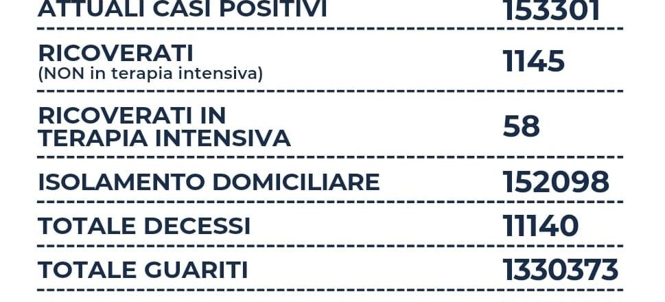 Nel Lazio su qu7asi 54 mila tamponi si registrano 5.053 nuovi casi positivi (+3.126), sono 11 i decessi (-1), 1.145 i ricoverati (+5), 58 le terapie intensive (-1) e +4.050 i guariti. Il rapporto tra positivi e tamponi è al 9,4%.