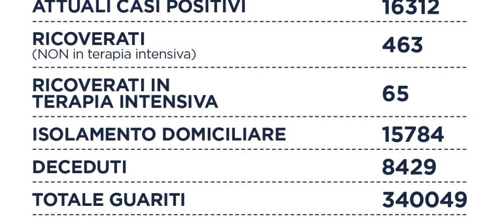 Nelle province si registrano 134 nuovi casi: Asl di Frosinone: 40 casi e 0 decessi. Asl di Latina: 54 casi e 0 decessi. Asl di Rieti: 15 casi e 0 decessi. Asl di Viterbo: 25 casi e 0 decessi.