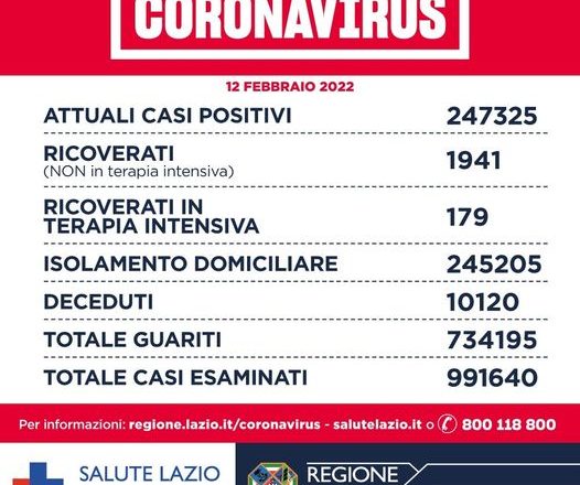 I casi a Roma città sono a quota 3.333. Asl Roma 1: 1.332 casi e 1 decesso. Asl Roma 2: 1.041 casi e 2 decessi. Asl Roma 3: 960 casi e 1 decesso. Asl Roma 4: 344 casi e 1 decesso. Asl Roma 5: 587 casi e 2 decessi. Asl Roma 6: 844 casi e 1 decesso.