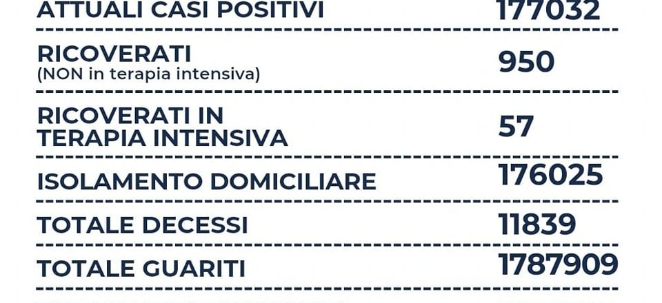 Nel Lazio su 1.772 tamponi molecolari e 6.799 tamponi antigenici per un totale di 8.571 tamponi, si registrano 1.334 nuovi casi positivi (-1.127), sono 8 i decessi (+4), 950 i ricoverati (+40), 57 le terapie intensive (+2) e +7.830 i guariti. Il rap-porto tra positivi e tamponi è al 15,5%.