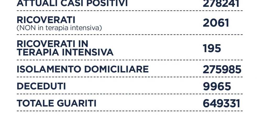Nelle province si registrano 2.519 nuovi casi: Asl di Frosinone: 855 casi e 1 decesso. Asl di Latina: 873 casi e 1 decesso. Asl di Rieti: 298 casi e 0 decessi. Asl di Viterbo: 493 casi e 1 decesso.