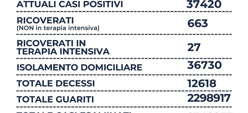 Nel Lazio su un totale di 11.693 tamponi si registrano 986 nuovi casi positivi (-178), sono 7 i decessi (+3), sono 663 i ricoverati (-25), 27 le terapie intensive (-3) e +1.438 i guariti. Il rapporto tra positivi e tamponi è al 7,7%.