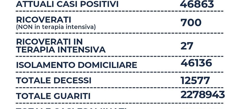 In aumento il totale complessivo dei casi registrati su base settimanale +19% e incidenza in aumento a 269 ogni 100 mila abitanti. Il valore Rt in leggera diminuzione a 0.81