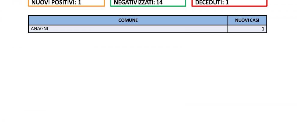 Covid – Record in provincia di Frosinone: un solo caso ad Anagni ed un decessoAttualità, In primo piano3 Giugno 2021 3 Giugno 2021 FROSINONE – Nelle ultime 24h sono stati effettuati 200 tamponi. E’ registrato un nuovo caso positivo al Sars-CoV-2.I negativizzati sono 14.Risulta un decesso di una persona residente nella provincia di Frosinone: un uomo di 69 anni di Cassino. Condividi sui social: Share on Facebook Share on WhatsApp Share on X (Twitter) Share on LinkedIn Share on Email Share on Telegram Navigazione articoli Previous Post Frosinone – Fuochi d’artificio pronti ad esplodere per festeggiare un detenuto: denunciati due campaniCronaca, In primo piano3 Giugno 2021Next Post Anagni – Con 8 banconote contraffatte: denunciato un 32enneCronaca, In primo piano3 Giugno 2021