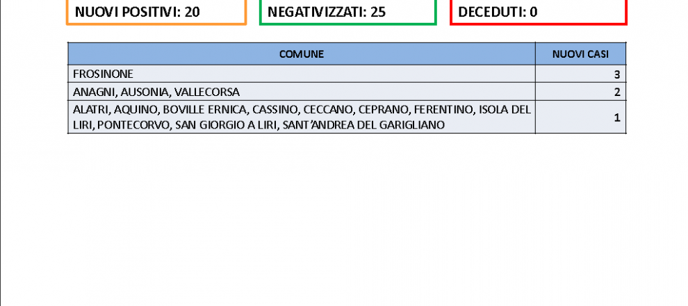 Ad Anagni, Ausonia, Vallecorsa sono stati registrati due casi.
