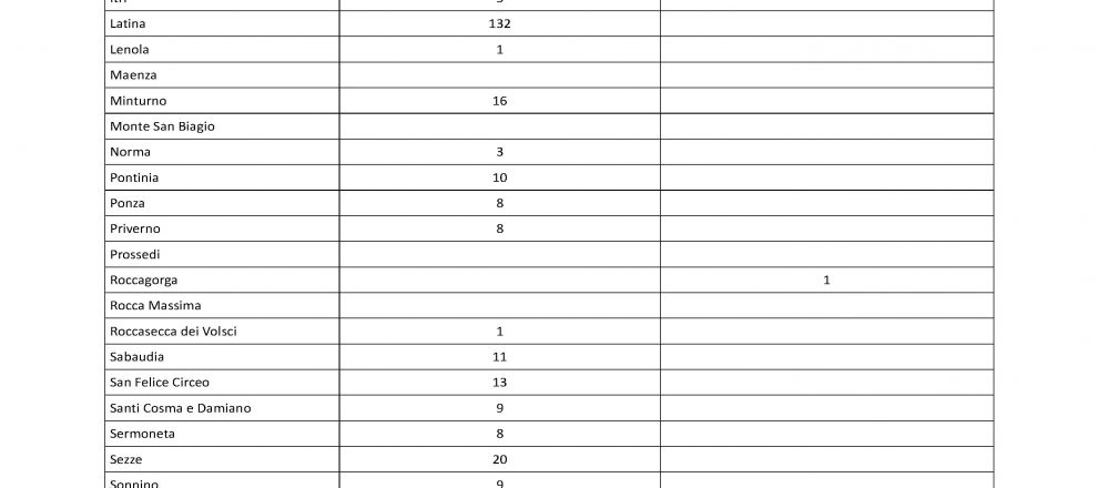 LATINA – 24 GEN – Sono 432 i nuovi casi in provincia di Latina, questi i numeri del bollettino odierno e due decessi a Roccagorga ed Aprilia. Il maggior numero di casi è stato registrato nel capoluogo con 132, 69 ad Aprilia, 31 a Terracina, 24 a Cisterna, 20 a Sezze e Formia, 18 a Fondi. Sono 94 i guariti e due i ricoverati nelle ultime 24 ore.