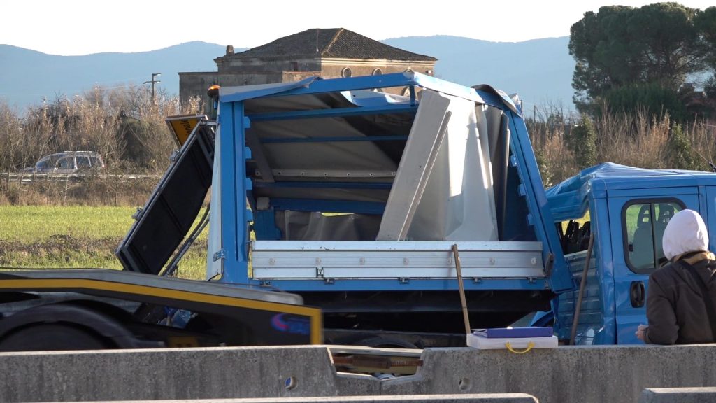 Secondo i primi rilievi a cura dei carabinieri della stazione di Ferentino agli ordini del comandante Alborino, il mezzo che viaggiava verso Sora ha colpito all’altezza dello svincolo per la Casilina, un furgoncino fermo ai margini della carreggiata e successivamente un altro mezzo della stessa ditta. Nell’impatto sono rimasti feriti tre operai e l’autista del camion. Uno degli operai ha subito le conseguenze più gravi e sul posto è atterrata una eliambulanza che lo ha trasferito al Gemelli di Roma. L’uomo è ricoverato con prognosi riservata.
