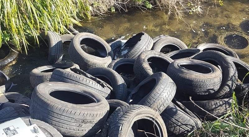 Pneumatici gettati nell’alveo del fiume Alabro a Ferentino.