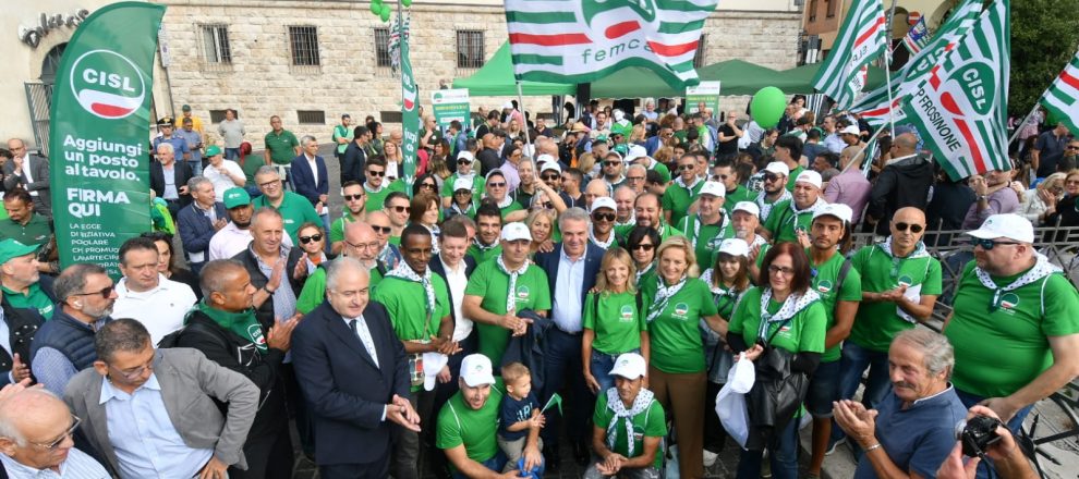 Lavoratori, precari, donne, giovani e anziani: in centinaia si sono ritrovati in piazza Matteotti a Ferentino per la seconda giornata della Festa della partecipazione della Cisl per la raccolta firme – in corso in tutta Italia – sulla legge di iniziativa popolare sulla partecipazione dei lavoratori agli utili delle aziende. Presente anche il segretario regionale della Cisl Lazio, Enrico Coppotelli e il segretario generale della CISL, Luigi Sbarra.