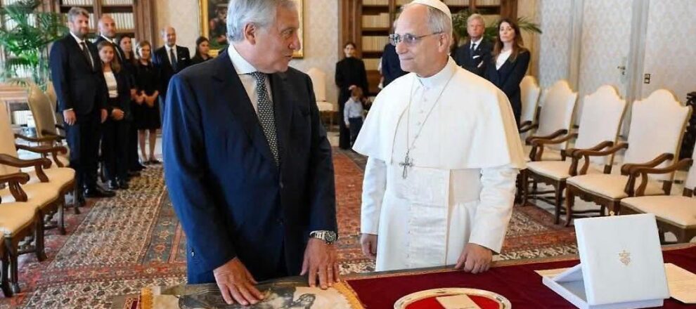 Un incontro istituzionale è diventato un simbolo anche di devozione e di appartenenza. Le immagini della visita di lunedì al Palazzo Apostolico tra il ministro degli esteri Antonio Tajani e il Santo Padre, Leone XIV hanno fatto il giro del mondo perché si è parlato dell’importanza delle relazioni bilaterali tra Italia e Santa Sede, soprattutto su temi come i vari conflitti in Ucraina e sulla striscia di Gaza. Si è trattato della prima udienza privata del Ministro con il Sommo Pontefice, al termine della quale, in uno scambio reciproco di doni, Papa Leone XIV ha ricevuto il vessillo di Sant’Ambrogio Martire, patrono della città di Ferentino.