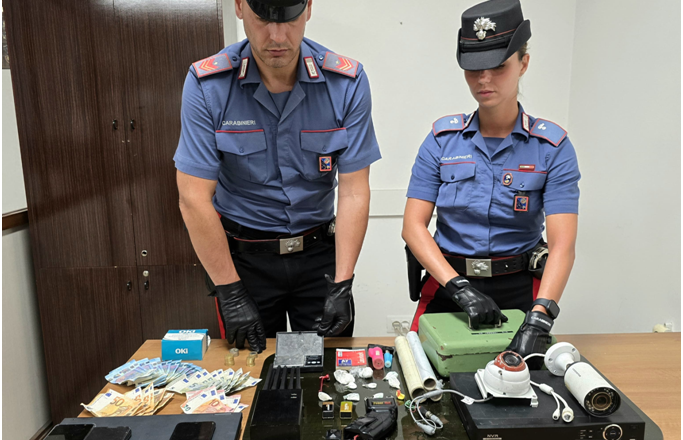 Una volta dentro, i carabinieri hanno perquisito l’abitazione rinvenendo 10 grammi di cocaina suddivisa in 11 dosi, circa 5 grammi di frammenti misti di cocaina e crack , un bilancino di precisione, materiale per il taglio e confezionamento dello stupefacente, appunti manoscritti nei quali – secondo le accuse – venivano annotate le cessioni e i debiti di droga che gli assuntori accumulavano.