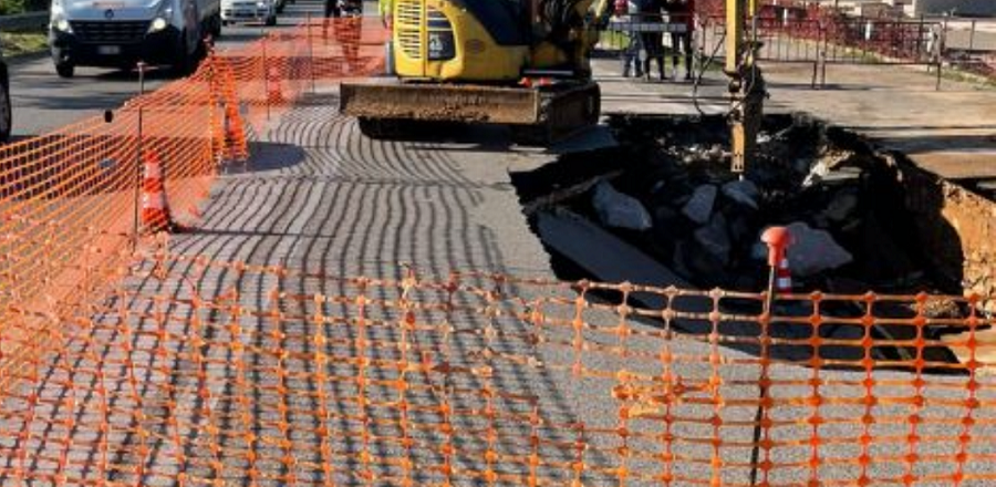 «Si è aperta una voragine durante i lavori di trivellazione orizzontale che E-Distribuzione sta eseguendo per la realizzazione della nuova linea di media tensione, danneggiando la condotta idrica in pressione – questo quanto riporta la nota della socie-tà che si occupa delle strade regionali – L’area interessata è stata messa in sicurezza e il traffico è regolato con senso unico alternato, è stato inoltre installato un impianto semaforico». Ora si stanno eseguendo i lavori di riparazione che termineranno il sei novembre.