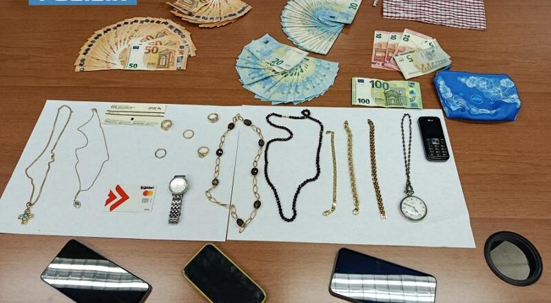 Nonostante i pochi indizi, i poliziotti hanno notato l’auto e fermata. Intuizione che si è rivelata giusta: durante il con-trollo hanno trovato una pochette contenente la refurtiva: 3 smartphone e un telefono cellulare, numerosi gioielli tra colla-ne, anelli e orologi, e poi un bancomat intestato alla donna e soldi in contanti.