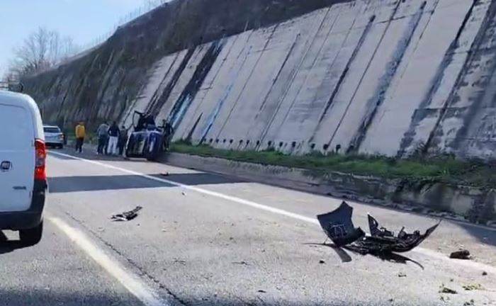 Paura in autostrada per un’auto che si è ribaltata uscendo fuori strada e terminando la corsa sul muro laterale. E’ successo poco dopo il casello di Frosinone in direzione sud.