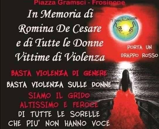 Domani alle 19 a Frosinone, in piazza Gramsci, ci sarà una manifestazione contro la violenza sulla donne, in memoria di Romina De Cesare, uccisa la scorsa settimana a Frosinone, e di tutte le vittime di violenza. È stata organizzata dal centro antiviolenza di Fiuggi e dal collettivo ugualmente, ma ha visto l’adesione anche di tante altre associazioni del territorio attive sul tema.