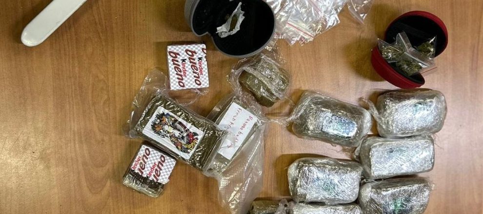 Il materiale repertato, all’esito del controllo di polizia, tramite narcotest, risultava essere sostanza stupefacente per un totale di oltre 1 kg e 300 grammi tra hashish e marijuana.