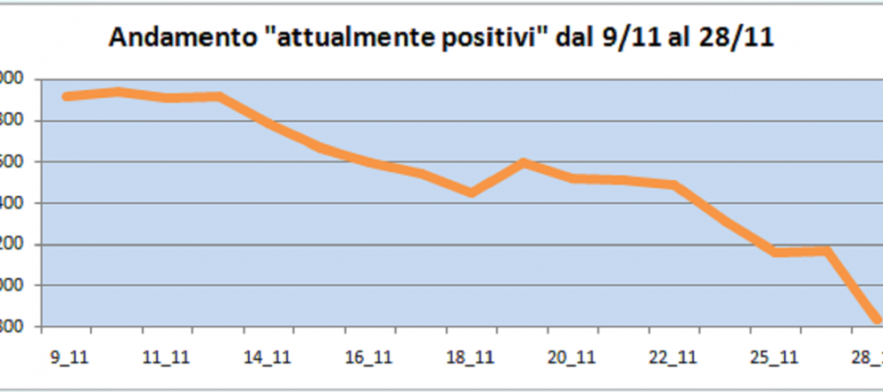 L’indice di incidenza sta calando in modo significativo in tutti i distretti della ASL. “La prossima settimana se l’attuale trend sarà confermato – specificano dalla direzione generale – avremo indici epidemiologici ancora migliori che ci permetteranno di allinearci ai valori medi regionali anche nei parametri che adesso ci vedono lievemente svantaggiati”. Dal 9 al 28 novembre il numero complessivi dei positivi è passato da quasi 4000 a 2800 circa.