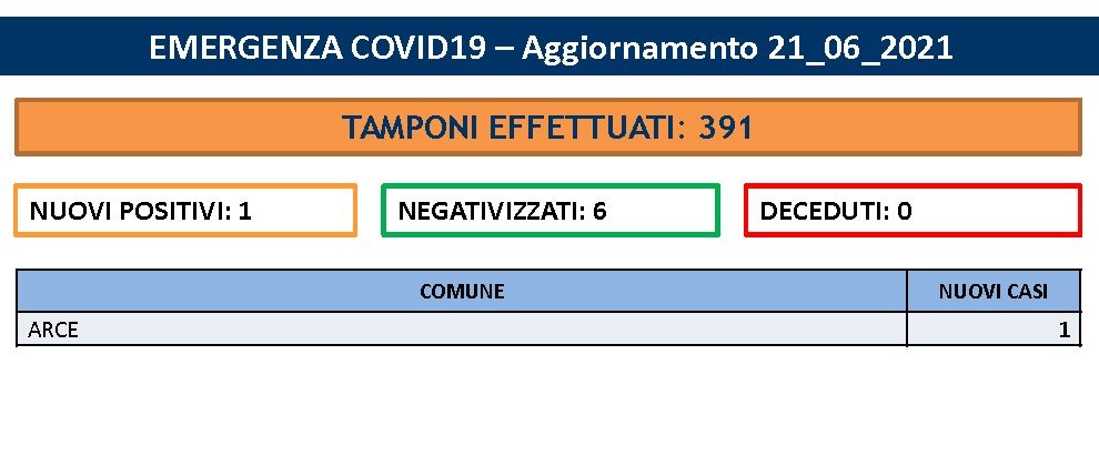Frosinone – Covid, solo un contagio in tutta la provinciaDalle Province, In primo piano21 Giugno 2021 21 Giugno 2021 FROSINONE – Solo un contagio in tutta la provincia, su 392 tamponi processati. E neanche oggi ci sono decessi. Una giornata da incorniciare per la Ciociaria, che conta anche 6 persone guarite dal virus. L’unico contagio si registra ad Arce. Condividi sui social: Share on Facebook Share on WhatsApp Share on X (Twitter) Share on LinkedIn Share on Email Share on Telegram Navigazione articoli Previous Post Priverno/Sezze – Spaccio di droga, eseguite otto misure cautelariCronaca, In primo piano21 Giugno 2021Next Post Covid – Nel Lazio 71 casi e 3 decessiDalle Province, In primo piano21 Giugno 2021