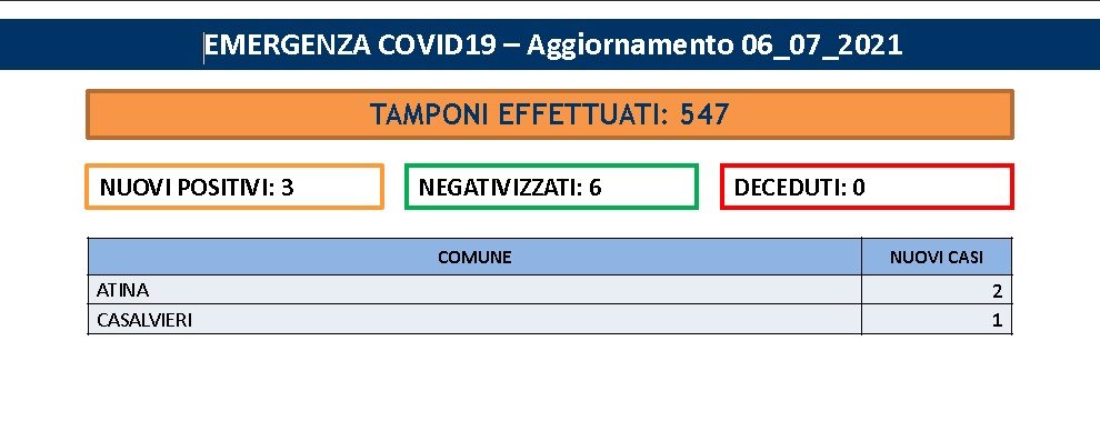 Frosinone – Covid, tre casi positivi e nessun decessoDalle Province, In primo piano6 Luglio 2021 6 Luglio 2021 Tre positivi su 547 tamponi eseguiti. Non c’è più lo zero, ma i numeri comunque continuano a non essere preoccupanti in Ciociaria. Ad Atina sono due i casi registrati, 1 a Casalvieri. Sei i guariti Condividi sui social: Share on Facebook Share on WhatsApp Share on X (Twitter) Share on LinkedIn Share on Email Share on Telegram Navigazione articoli Previous Post Lazio – Vaccini, a breve le prenotazioni per la fascia 12-16 anniDalle Province, In primo piano6 Luglio 2021Next Post Lazio – Covid, si scende a 58 casi. I guariti sono 418Dalle Province, In primo piano6 Luglio 2021