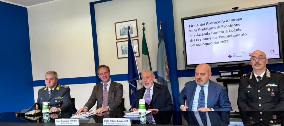 È stato firmato presso la Direzione Generale della ASL di Frosinone, un accordo d’intesa tra la Prefettura di Frosinone e la ASL di Frosinone finalizzato al potenziamento delle attività connesse al colloquio Not quelli richiesti per casi di tossicodipendenza. L’Accordo nasce dall’esigenza di ridurre i tempi di attesa tra la segnalazione, oltre 650 in un anno e l’espletamento del colloquio, garantendo un intervento più tempestivo e quindi più efficace sul piano preventivo.