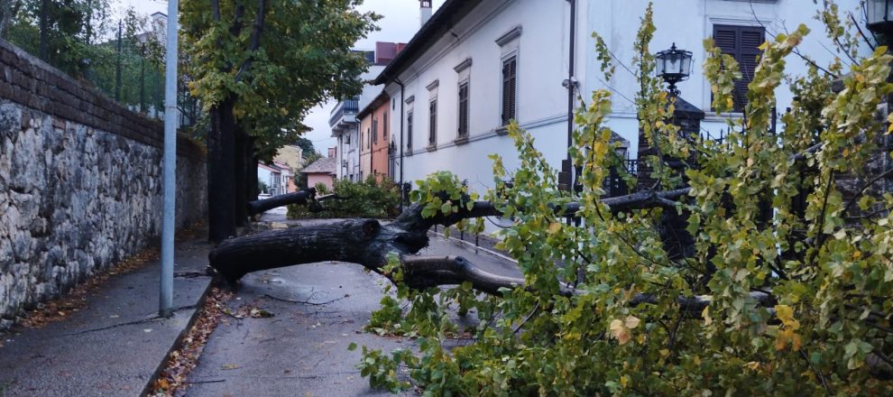 Raffiche di vento che hanno sfiorato i 100 km/h hanno sferzato nel cuore della notte la provincia di Frosinone a partire dalle 3:00. Il vento, associato a rapidi fenomeni temporaleschi, ha portato qualche disagio soprattutto lungo le strade. Si segnalano alberi caduti in diverse zone della provincia e strade invase da rami, senza però creare particolari criticità. A Ceccano un albero è caduto sulla strada che porta al cimitero e al liceo, fortunatamente in quel momento non transitavano auto. Diversi gli interventi dei vigili del fuoco, tra le città più colpite Anagni, dove è stato attivato il COC. Interrotta tra Ceprano e Ceccano la linea ferroviaria Roma-Cassino, anche in questo caso per la caduta di alberi che hanno invaso la ferrovia. L’interruzione è stata decretata alle 4:50, enormi i disagi per i pendolari con treni cancellati ed offerta riprogrammata. Trenitalia ha invitato i cittadini a limitare gli spostamenti in treno.