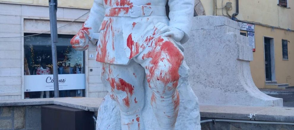 Deve rispondere dei reati di danneggiamento e rapina il 33enne di Alatri accusato di aver imbrattato di sangue la statua di Norberto Turriziani a Frosinone, nella notte tra sabato e domenica.